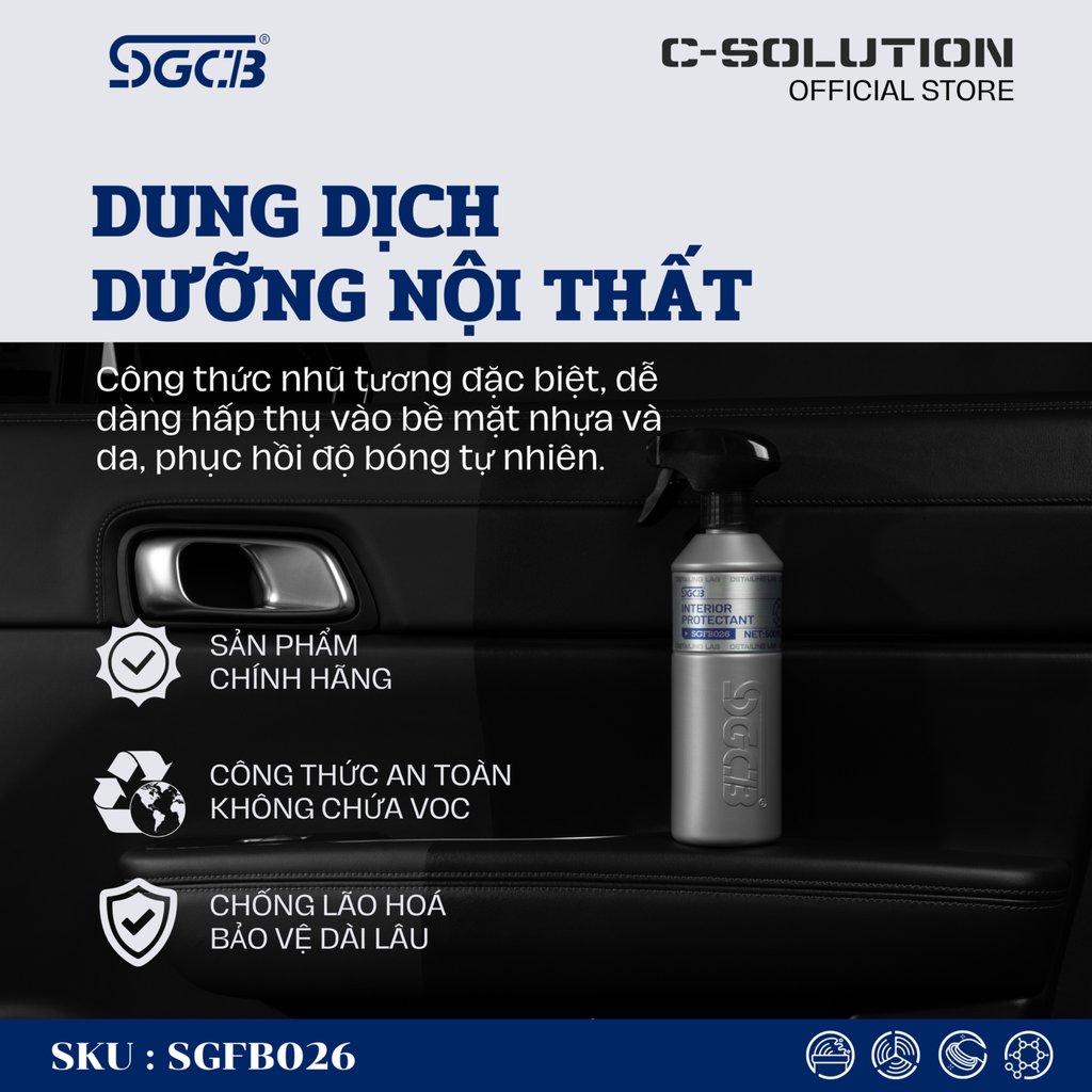 Chống Lão Hóa Và Bảo Vệ Lâu Dài: Tăng cường độ sáng, bảo vệ các chi tiết nhựa và da khỏi lão hóa, nứt nẻ. Lớp dưỡng chất giúp kéo dài tuổi thọ các bộ phận nội thất. Không Nhờn Dính, Dễ Dàng Làm Sạch: Bề mặt sau khi dưỡng không bị nhờn dính, hạn chế tối đa bám bụi bẩn. Đặc tính trung tính đảm bảo an toàn cho mọi chi tiết nội thất.